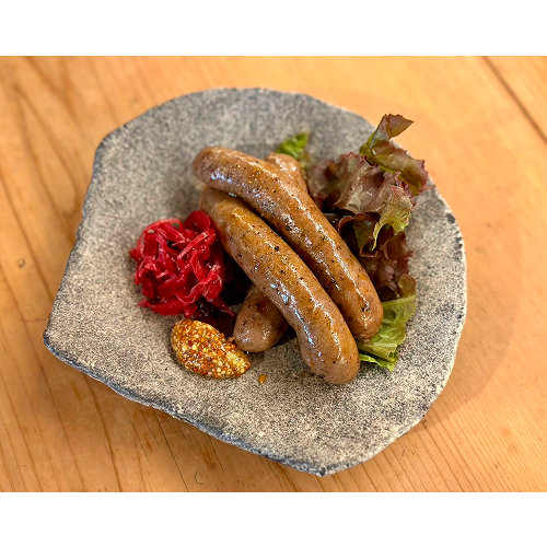 福井県産ブランド豚を使用した、ジューシーな粗挽きソーセージ。ビールと一緒に味わっていただきたい、贅沢ソーセージです。