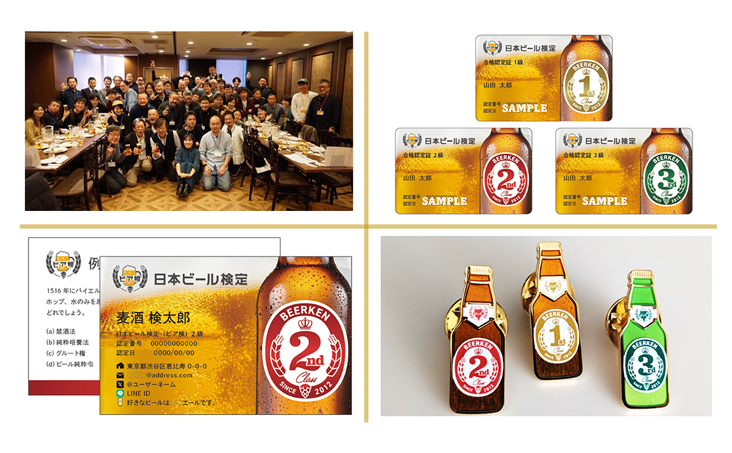 合格者には、全員に認定証が授与されます。また、希望者には有料特典として認定バッジや認定名刺もご用意。これらはビール好き同士のコミュニケーションツールとして活用され、イベントでの交流や乾杯の場面でも話のきっかけになるアイテムとして親しまれています。